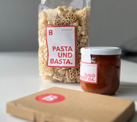 Pasta als Kundengeschenk ist ja per se nichts Neues. Wenn aber die Pasta in Logo-Form daherkommt und noch von Sugo und einem Tischkalender mit 12 passenden Rezeptvorschlägen begleitet wird, schaut dies ganz anders aus.