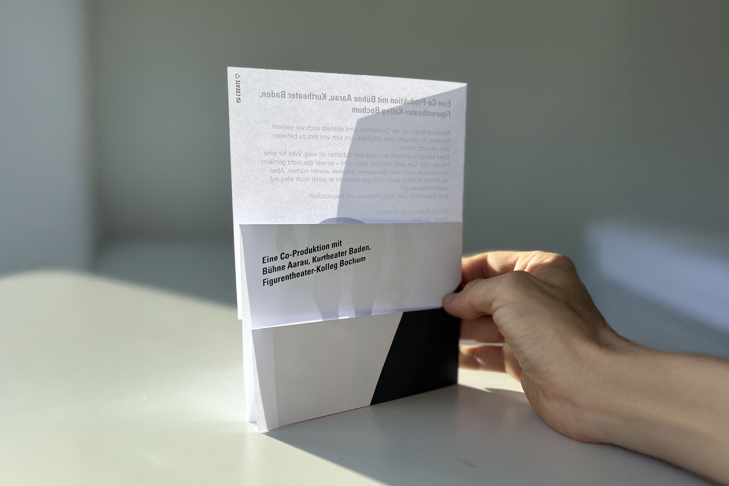 «Le collectif barbare» genau genommen. Und zwar in der Alten Reithalle Aarau. Das Stück «Winterreise» ist ein grenzüberschreitendes Musiktheater. Natürlich braucht ein richtiges Theater auch die richtigen Kommunikationsmittel. ISI Create entwickelte den stillen, poetischen Visual für Plakat und Flyer. Entwurzelt ist der fliegende Baum übrigens nicht zufällig: Die Performer und Performerinnen kommen aus aller Welt. Auf jeden Fall sehens- und hörenswert.